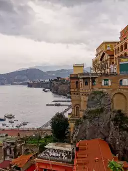 Sorrento is a beautiful seaside town located on the Amalfi Coast in southern Italy. It is famous for its beautiful coastline and stunning scenery, and the pastel-colored houses and the sea are charming. Sorrento is one of the main tourist destinations in the Amalfi Coast region along with Fiorentino, Amalfi, and Positano, and is especially famous as a romantic travel destination. Sorrento is also popular as a food destination, with many restaurants and cafes where you can enjoy delicious seafood and Mediterranean food.