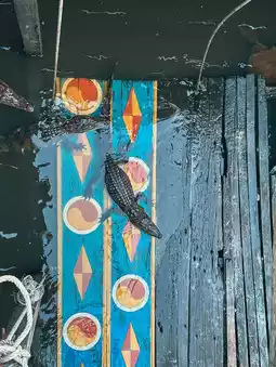 The village also has a floating restaurant and a shop. The owner of the restaurant we stopped at has a side job of raising crocodiles he catches around the area and selling them when they grow up🐊