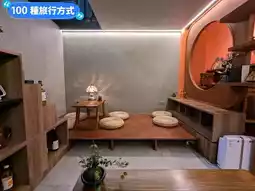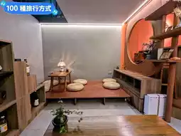 Japanese wooden decorations and orange walls create a cozy space with warm colors. The bar area, tatami low seats, and leather sofa area are separated by hollow wooden screens. The textured ornaments and potted plants give people a comfortable and relaxing feeling.