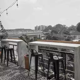 With semi-industrial interior and outdoor with a view of a residential area. Plus the canopy roof makes the shadow look really pretty. Moreover, the afternoon is really beautiful here 😍