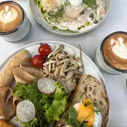savored their full breakfast, a perfect harmony of sourdough, creamy scrambled eggs,homemade bacon, hearty sausage, and their signature harissa that elevated every bite.