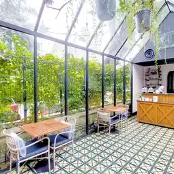 To be honest, when I came here it was a bit round and round, because it was hard to find the gang, wow. This LTG has a greenhouse concept, the indoor spots are really cool! Make beautiful photos pars. The outdoor is also really chill, good for a beautiful tea, jiakh The food and drink are almost all delicious! The looks are beautiful too, here's the review 🍗 Chicken Basil Lemon Leaves (4/5) I swear it's rare for me to find a cafe that sells a menu like this, the average rice bowl, right? This menu is LTG's best seller, tastes good, tasty, and not spicy, but there is chili if you want it spicy, the chicken is juicy. But for me it's a bit sweet, but overall it's okay 👌🏻 🥡Tofu Chili Salt (3/5) The portion is really big, this makes a delicious meal. It feels good! The onion smells good, it's a little spicy, and the taste is just right. 🍓Pramasvari (5/5)