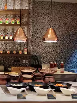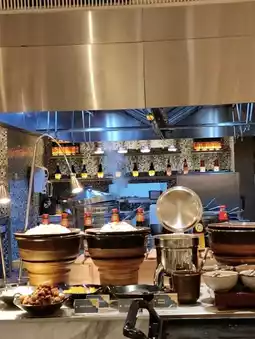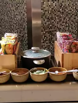 staying at the Sheraton Hotel, don't miss the very delicious breakfast menu. the menu is very diverse, starting from Korean, Asian, Indonesian, western menus to a varied pastry menu. the area is quite large and the atmosphere is pleasant. the ice cream menu is also diverse with various toppings. the fruits served are super complete, there are salak, mangosteen, watermelon and other tropical fruits. the staff is also very friendly and helpful.