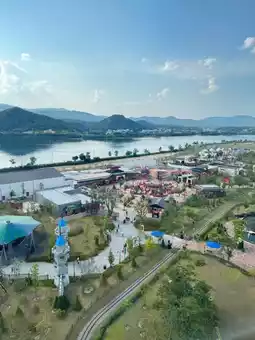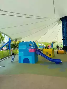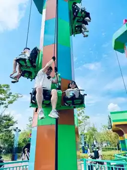 Brick Street is the first area you encounter, featuring the largest souvenir shop in the park. Brick Kingdom is perfect for young children, with gentle rides, slides, and water play areas. The Monkey Climb, a favorite, involves manually pulling yourself up for a free-fall experience, which was thrilling enough to try three times. The observation tower offers a 360-degree view of the park and the surrounding river, providing a cool respite.