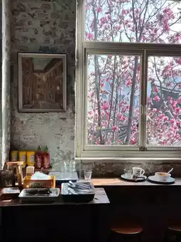 The staff showed us a situation where there were more than 70 people waiting in front of us. So we just looked and couldn't eat. There were beautiful flowers blooming outside the window, and I thought how comfortable it would be to eat a bagel and drink coffee here! What a shame!! There are so many varieties that some people may have trouble choosing (a little frustrating).