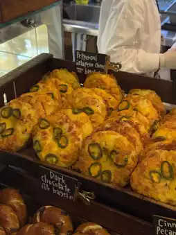 When we entered the store, we were surprised at the number of people there, and we were overwhelmed by the amount of bagels everyone was buying. We bought some and tried them on the second floor, and we could see why it's so popular. They were all delicious and we didn't disappoint.