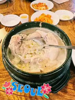 Tosokchon, a super famous restaurant near Gyeongbokgung Palace in Seoul, is a must-visit for Samgyetang lovers. The soup, filled with a whole chicken, glutinous rice, ginseng, jujube, and more, is rich yet refreshing, offering a flavor that warms the soul. The traditional Hanok-style ambiance is also a big plus!