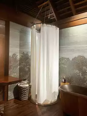 The wooden beam floating on the sea, the single wooden boat placed on the restaurant roof, the 30-meter-high pure wooden SPA lobby, and the 50-year-old vintage wood used to make stools, washbasins, and even bookshelves📚, the annual rings make my eyes dizzy. After traveling around the world for so many years, this is the top luxury I've never seen before, and all the hustle and bustle is drowned in the sea of time🌊.
