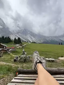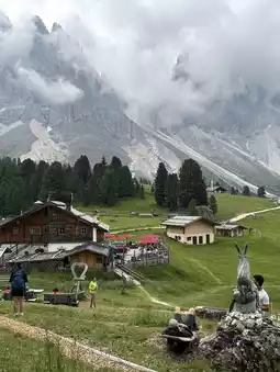 The final stop was Rifugio delle Odle — a cozy mountain hut with a wooden facade, panoramic swings, and a silence you won’t forget.