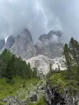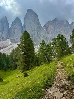 Dark clouds wrapped around the mighty Odle peaks, changing their appearance every minute.
