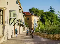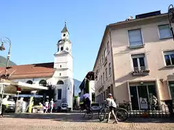 Stroll amidst pastel-colored buildings, cobblestone streets, and the town's iconic twin-towered church 🕍.