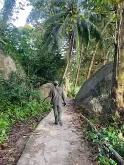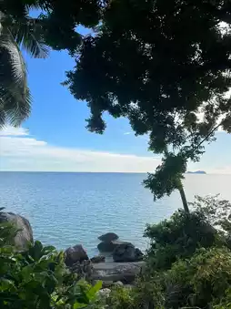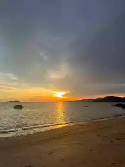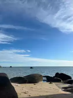 The beach is located next to the village. Walk a little into the village and you will find the beach. There are not many tourists here. Most of the people who go there are locals, so the atmosphere is quite peaceful and not crowded. It is very suitable for sitting and relaxing.