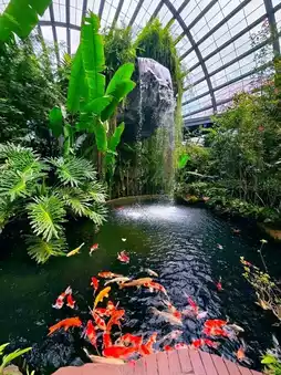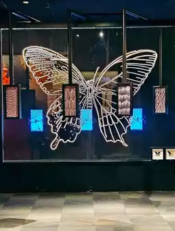 The space is beautifully designed, with a seamless blend of indoor and outdoor areas filled with vibrant butterflies and other creatures. The butterfly garden itself is breathtaking — a waterfall welcomes you at the entrance, and in the centre stands a tall tree with curtain-like vines, creating an ethereal, almost magical atmosphere.