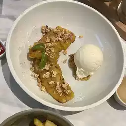 We ordered their dessert, Pisang Gepeng which is fried banana with caramelizer brown sugar and vanila ice cream. The fried banana goes very well with the caramelized brown sugar. The portion os quite small though. We also ordered their fries and it is crispy. My friend ordered Kopi Sadewa which consists of ice cubed coffee with caramel cinnamon flavoured milk and she said it was nice as the cinnamon taste is not dominant so you can still taste the coffee. Overall it was a good experience dining here.