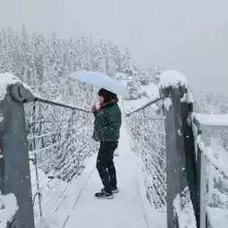 When going to Whistler, we will pass by here. We have 9 people driving two cars to go there. Because it will be more expensive to buy tickets for the exhibition on site, it is recommended to buy them online... It snowed heavily when I went up, so I didn't walk into the forest, just walked the suspension bridge after a slight break at the rest stop and it was sunny if there was no heavy snow.