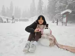When we arrived, we get to walk the Sky Pilot Suspension Bridge in the snow. The whole place is like a magic place and my cousin and I even made a snowman in this white world.