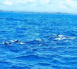 You'll catch glimpses of a few whales surfacing and diving back into the ocean.