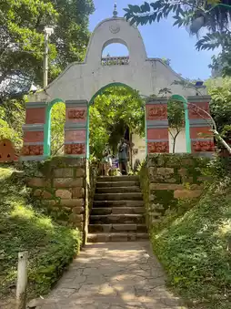 During the hike, it is easy to see monkeys swinging through the trees. There is also a Buddhist temple and a large carved Buddha.