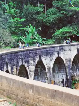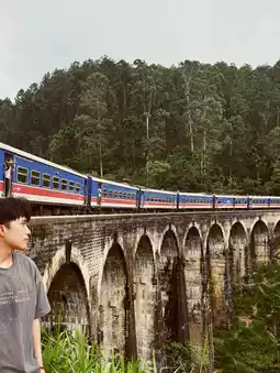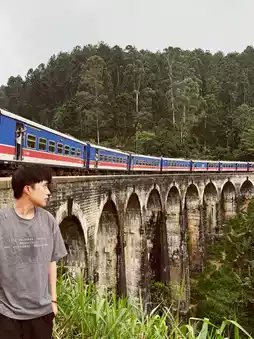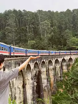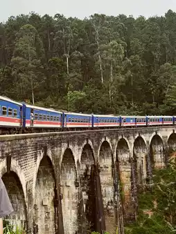 Nestled in the lush highlands of Ella, this architectural marvel isn't just a bridge—it's a symphony of stone and jungle. Watch as vintage blue trains snake across nine perfect arches framed by towering tea plantations and misty valleys.