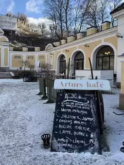 Arturs Kafé had the loveliest carrot cake and warm tea—just what I needed after walking through the frosty paths! And those fairytale buildings? Straight out of a storybook.