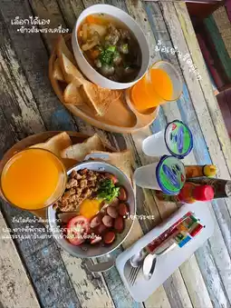 Departing from Ayutthaya, we drove slowly, not rushing, focusing on letting go and enjoying ourselves. Consider it a vacation, not focusing on visiting landmarks because we were afraid that if we rushed, we would get tired. If we wanted to sit somewhere for a long time, we would sit and take in the atmosphere. Before we knew it, time had already passed. There were only pictures of scenery on my phone, and the food was just as I had posted. Each place we went to was not too expensive to be out of reach. This time, we really came to relax.