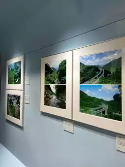 The photography exhibition on the second floor of Suao Service Area - "National Highway and Green Corridor - Seeing the National Highway Construction from Zeppelin" is divided into four areas, each presenting a different story and perspective. The first zone shows the arduous process of national highway construction, the second zone shows the magnificent scenery of the road through Zeppelin's lens, the third zone focuses on ecological sustainable development, and the fourth zone reviews the history and important moments of national highway construction.