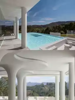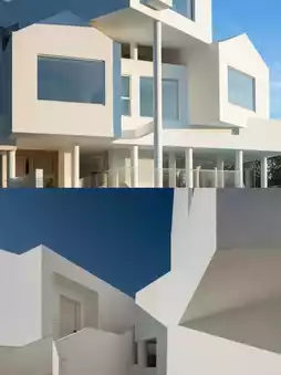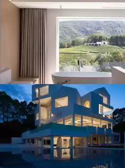 In the unique geographical environment surrounded by mountains and forests, the designers wrapped the architecture in white paint to outline the pure white building with minimalist geometric lines, like an off-white tree nest, hidden in the forest with a strong sense of design, depicted in the forest The boundary between light and dark creates a unique landscape standing in the mountains [Joyful]