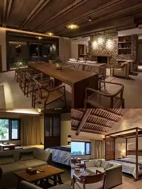 The manor’s guest rooms are named after Jin Yong’s martial arts novels, each filled with a heroic and subtly luxurious vibe. Pull back the curtains, and you’re greeted by endless mountains—absolutely breathtaking scenery!