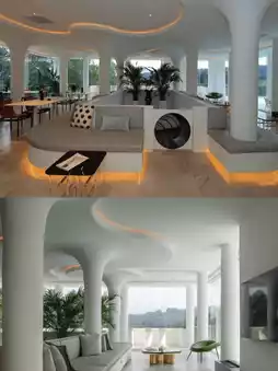 The public areas are well-equipped with a variety of entertainment options. There is a chess and card room, bar, activity room, fishing area, KTV, children's room, and game machines. The surrounding lounge area has a unique shape, and a spiral slide leads to the underground space, enhancing interactivity. Outside the first-floor lobby is an infinity pool where sunlight fills the underground space, making afternoon swims extremely pleasant. There is also a private yacht to take you and your friends for a leisurely cruise on the Wuxi River.