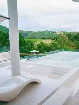 Over a thousand square meters of buildings + a 1600㎡ courtyard, perfect for taking amazing photos 📸! The infinity pool is embraced by the mountains and forest, lying here watching the scenery is so relaxing~ All spaces have 90° floor-to-ceiling windows, and some rooms even have 270° panoramic glass, opening your eyes to a painting!