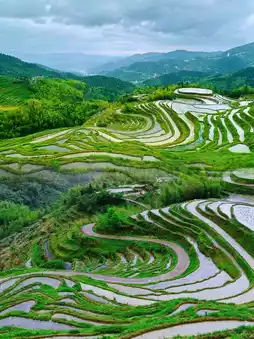👀 Panlonghui: Panlonghui, also known as Panlongduan, is picturesque all year round, shrouded in mist, like a painting of 'The Divine Comedy', or a re-enactment of 'The Ladder to Heaven'. The terraces here are straight and orderly, each curve meticulously carved by nature, resembling thousands of dragons gathered here, arranged densely and neatly in the fields.
