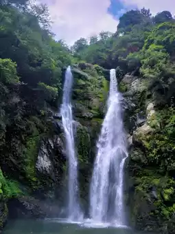 The sight is like "a torrent plunging three thousand feet," and it’s super cool standing right beneath it! 💦