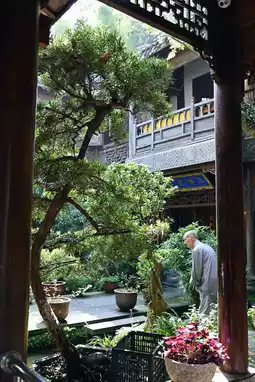 The two jade seals and one jade Buddha are placed in the 'Imperial Seal Hall', which requires a 30 yuan ticket to enter. What's shocking is that during the preliminary research, I saw few recommendations for this place. The Imperial Seal Hall is an open-air courtyard completely different from the outside, with lush flowers and plants, small bridges over flowing water, and a very quaint and beautiful double-story wooden building. The Jade Buddha Hall in the main hall enshrines a Burmese jade Buddha and two imperial seals. Among them, the Song seal is the 'Imperial Seal for Suppressing the Mountain' granted by Emperor Zhenzong of Song, and the Ming seal is the 'Four Nations Wen Jade Seal' granted by Emperor Wuzong of Ming, which can command all temples in Sichuan, Yunnan, and Guizhou, and also serve as a pass. The jade Buddha statue is about one meter tall, carved from Bhutanese white jade in Myanmar, consecrated, and then brought back to China for worship. The Buddha statue is serene and compassionate, with a dignified appearance. The old monk who explained it insisted that I take a closer look, saying that if I held my breath and concentrated, I could see the veins in the Buddha's eyelids pulsating.