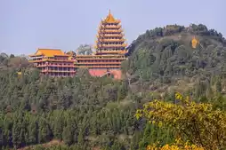 Lingquan Temple is divided into two parts: the lower temple and the upper temple. The lower temple has 12 halls, including the Mahavira Hall, the Heavenly King Hall, the Wenchang Hall, and the Ancient Buddha Hall. The upper temple is located on the top of Lingquan Mountain and has nine halls, including the Guanyin Hall, the Patriarch Hall, and the Eye Light Hall, as well as the Guanyin Pavilion Temple.