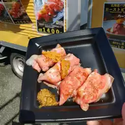 I had sea urchin and Hokkaido beef sushi while watching the cherry blossoms at the Expo Commemoration Park Sakura Festival, which was held at the same time.