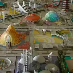 • Space capsule pavilion: The silver oval shell with round porthole windows looks like a spaceship about to take off. It is now the "Museum of Humanity and Nature", displaying historical images of the Expo and environmental-themed installations