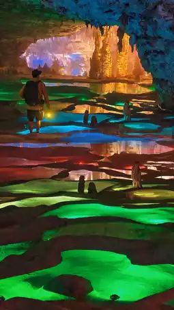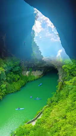 Besides the stunning heart-shaped jade lake, the climbing routes on the cave walls are super thrilling!