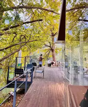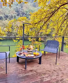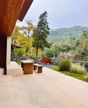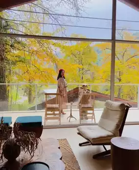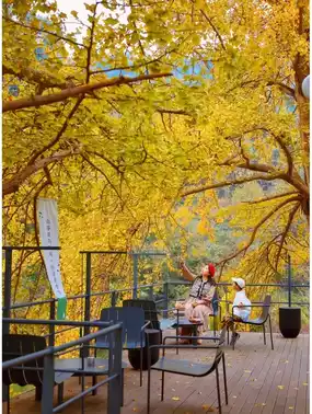 The several hundred-year-old ginkgo trees in front of the coffee shop are growing well. The view outside the window of our parent-child room is also very good. The hot springs in the mountains are a perfect match for ginkgo. The hot springs can be indoors.