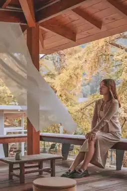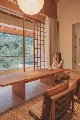 ✅There is a coffee shop by the lake protected by tree shade, a quaint tea pavilion, a hot spring in the room, and a thousand-year-old ginkgo valley nearby