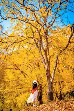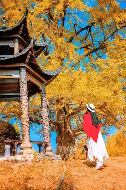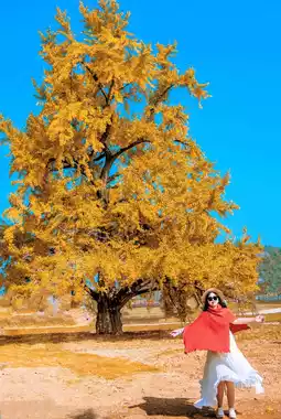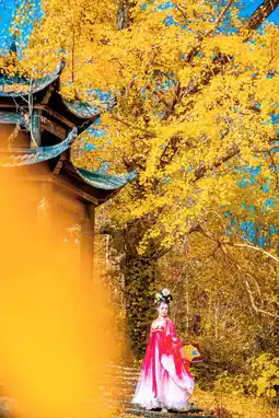 ๐จ Autumn is the most beautiful season in Ginkgo Valley. The golden ginkgo leaves fall with the wind, covering the entire valley, as if the earth is covered with a golden carpet. ๐ Here, you can take photos as much as you want, and every frame is a beautiful picture. ๐ธ Wearing Hanfu, it seems to travel back to ancient times, blending with this golden ocean, beautiful as if not in the world. ๐