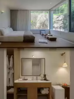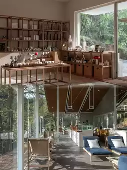 The homestay has 24 rooms, each with a unique view and perspective. There are 12 types of rooms for guests to choose from, and the rooms are fully equipped with all kinds of facilities. The large floor-to-ceiling windows face the ancient trees, and when the sunlight shines through the treetops into the room, you can sit on the bay window and immerse yourself in a whole day of comfort and ease, feeling the beauty and tranquility of nature.