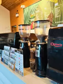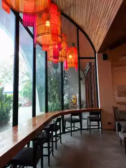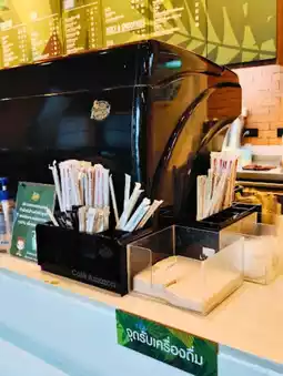 💯 Café Amazon Sukhothai Petroleum (Baan Suan) branch is another interesting branch. Its design combines the uniqueness of Sukhothai with modernity. The highlight is the "Dawn of Happiness" sign in Sukhothai-style Thai characters and the entrance to the shop that curves like the rising sun. Inside the shop, there is a spacious area with high ceilings and is airy. There is a meeting room area and a shady garden at the back, perfect for relaxing, sipping drinks or meeting up. There are also a variety of drinks and desserts to choose from, just like other branches of Café Amazon.