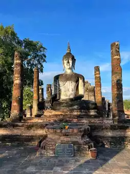 Sukhothai Historical Park, a World Heritage Site, reflects the glory of the early Thai kingdom. Inside, you'll find ancient sites and Buddha statues, such as Wat Mahathat, Wat Si Chum, and Wat Si Sawai. Each site is steeped in art and valuable stories. Surrounded by tranquil nature, it's perfect for cycling or strolling. It's not only a tourist attraction, but also a place where you can learn more about Thai culture.