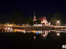 When talking about Sukhothai, a city of history and timeless beauty, 🕰️ one temple not to be missed, especially at night, is Wat Traphang Thong, a temple in the heart of Sukhothai's old town. While it may appear simple during the day, when the sun sets, the atmosphere transforms into a picturesque "Temple of Light and Shadow."