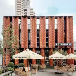 BOTTOMLESS has been on a coffee journey for over 20 years until the latest branch, Sukhumvit 33, in the form of a large red brick building with a relaxing atmosphere with green space and large skylights to let in natural light, but still fully retaining the atmosphere of Bottomless.