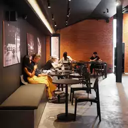 This branch has a large area, divided into an outdoor zone with a shady atmosphere and an indoor zone with 2 floors of seating. There is also a rooftop that gives a cool mood like an apartment in Brooklyn.