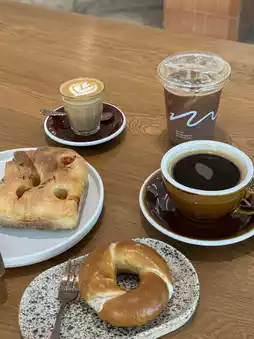 The desserts that are paired with the drinks are delicious and go well together. Guaranteed goodness because they use pastries from @simplythebread, a famous shop in the Sourdough industry. There are Pretzel, Bagel, Focaccia, and Croissants. The dough is very good.