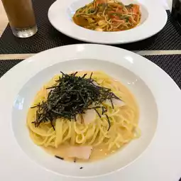 I ordered the tarako pasta, which had a rich and savory umami flavor, perfectly balanced with a creamy texture. For dessert, I couldn’t resist trying their hotcakes—thick, fluffy, and just the right amount of sweetness. Such a satisfying meal!