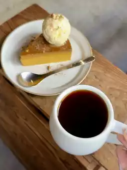 The café takes its coffee seriously. You can choose both the beans and the brewing method — French press, AeroPress, or hand drip — each carefully prepared to highlight the aroma and clarity of flavor. The result is a clean, well-balanced cup that pairs perfectly with dessert.