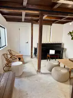 Nestled in a quiet neighborhood near Komurai Station, off COFFEE. is a charming café and taiyaki shop set inside a beautifully renovated 90-year-old row house. Its nostalgic wooden exterior and peaceful atmosphere make it feel like a secret retreat — a place where time slows down.